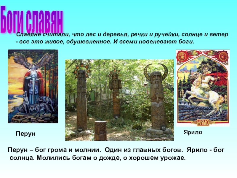 Перун – бог грома и молнии. Один из главных богов. Ярило - бог
