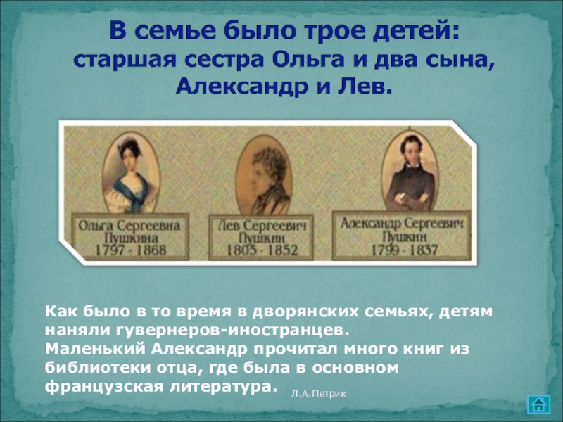 Отец поэта, Сергей Львович, любил литературу, собрал большую библиотеку.