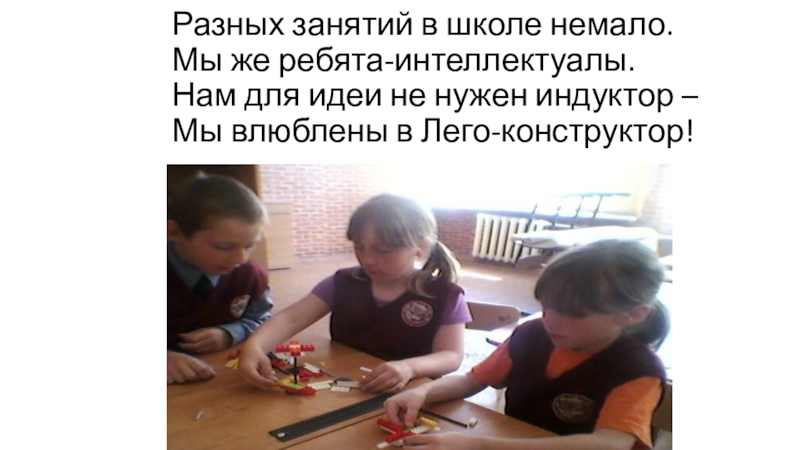 Слайд 5 Разных занятий в школе немало. Мы же ребята-интеллектуалы. Нам для идеи не нужен