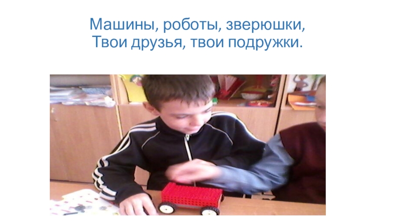 Слайд 6 Машины, роботы, зверюшки, Твои друзья, твои подружки.