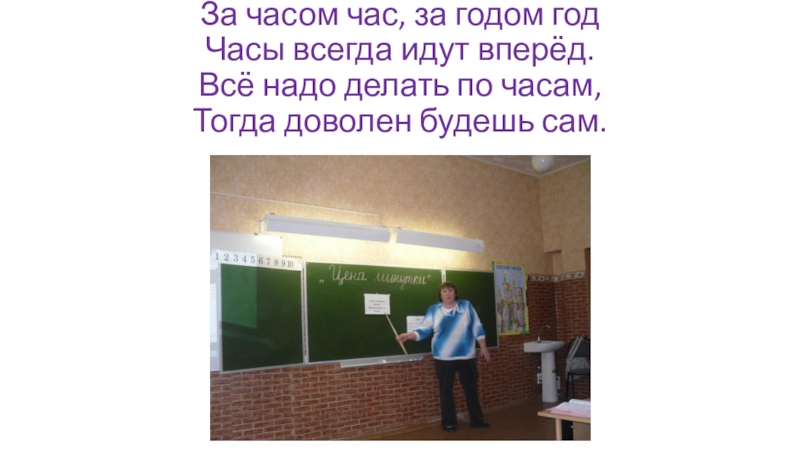 Слайд 11 За часом час, за годом год Часы всегда идут вперёд. Всё надо делать