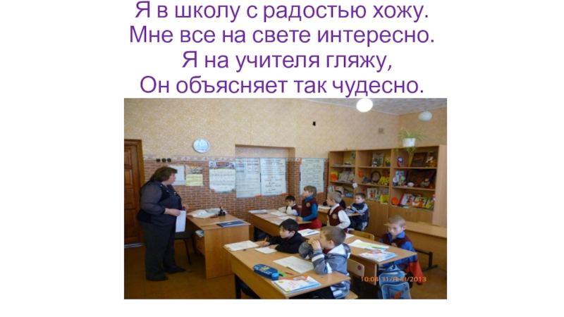 Я в школу с радостью хожу. Мне все на свете интересно.  Я на учителя гляжу, Он