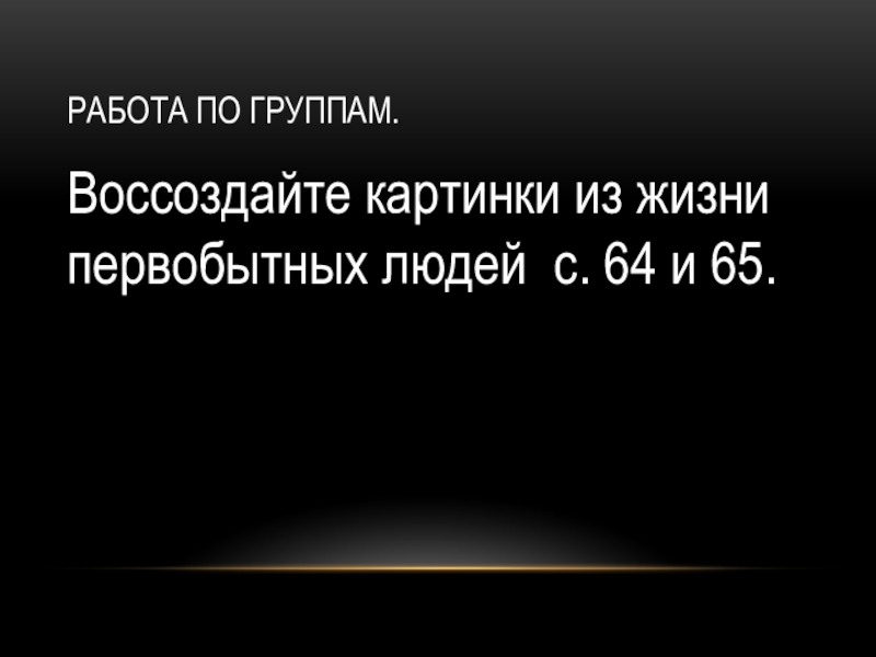 Работа по группам.Воссоздайте картинки из жизни первобытных людей с. 64 и 65.