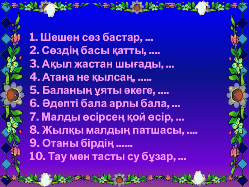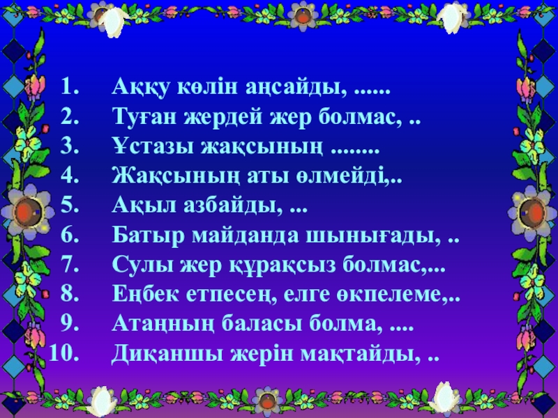 өлеңдерін жатқа айтады.