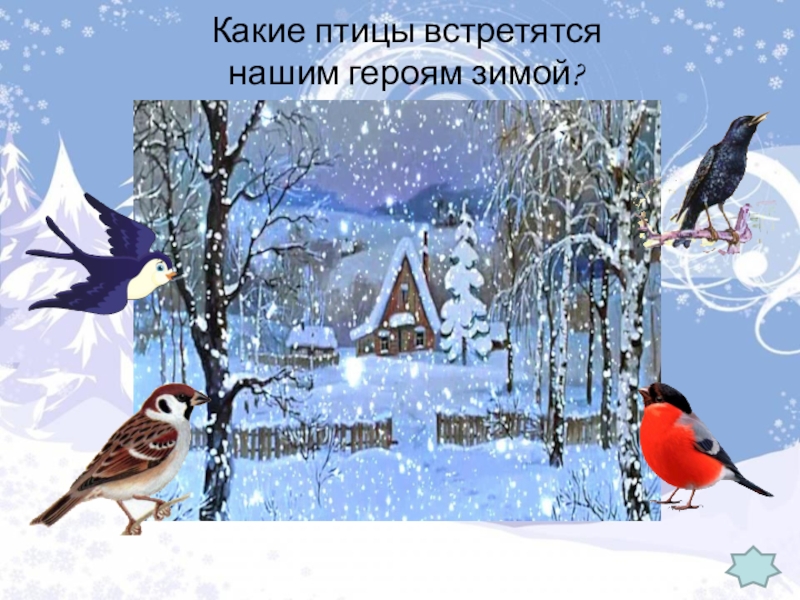 Слайд 5Какие птицы встретятся нашим героям зимой?