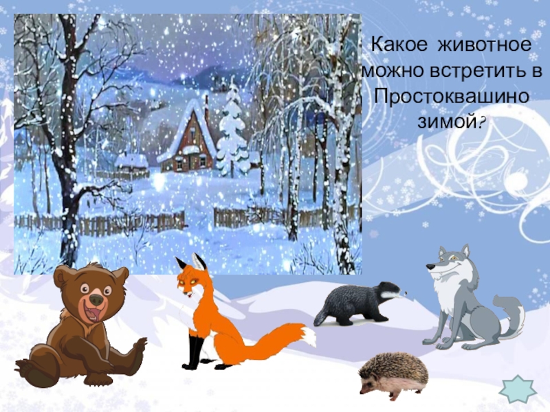 Слайд 4Какое  животное  можно встретить в Простоквашино зимой?