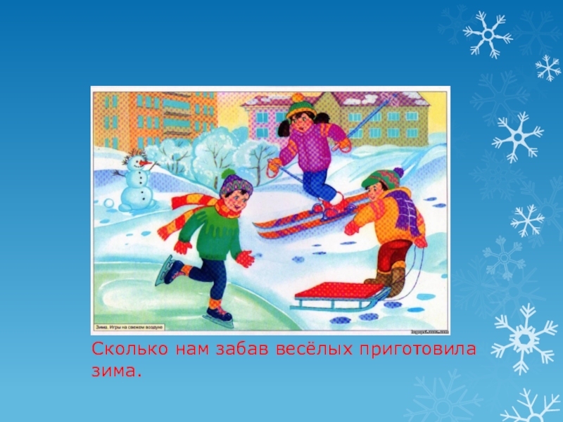 Слайд 3Сколько нам забав весёлых приготовила зима.