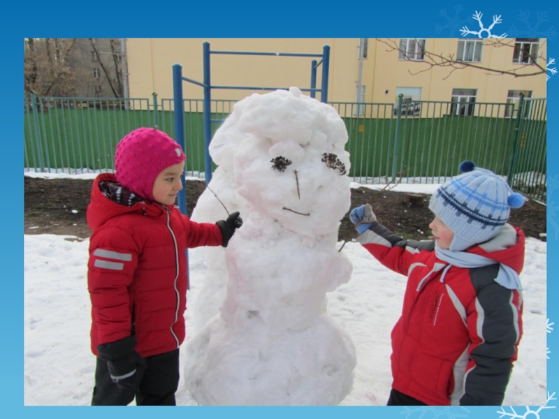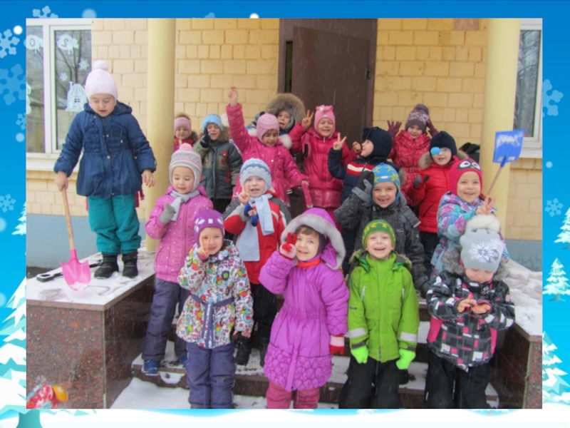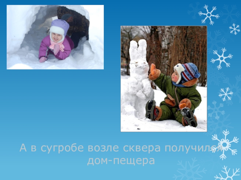 Слайд 20А в сугробе возле сквера получился дом-пещера
