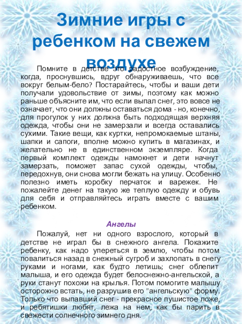 Слайд 1Зимние игры с ребенком на свежем воздухе