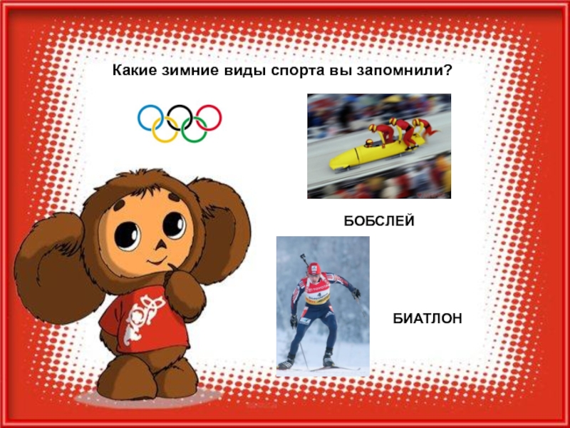 Слайд 36Какие зимние виды спорта вы запомнили?