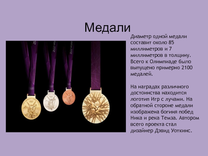толщину. Всего к Олимпиаде было выпущено примерно 2100 медалей.
