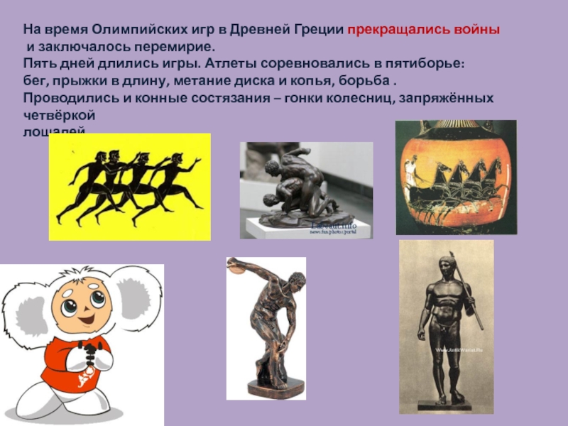 Слайд 5На время Олимпийских игр в Древней Греции прекращались войны