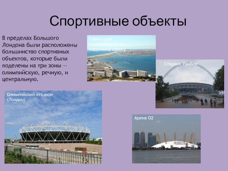 В пределах Большого Лондона были расположены большинство спортивных объектов, которые