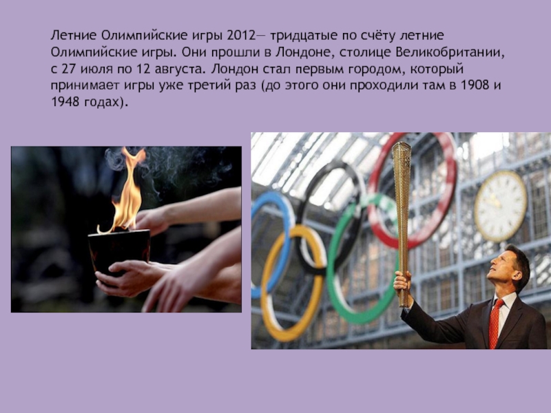 Слайд 10Летние Олимпийские игры 2012— тридцатые по счёту летние Олимпийские игры. Они