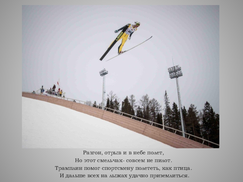Слайд 17Прыжки на лыжах с трамплина – дисциплина, представляющая собой прыжки на