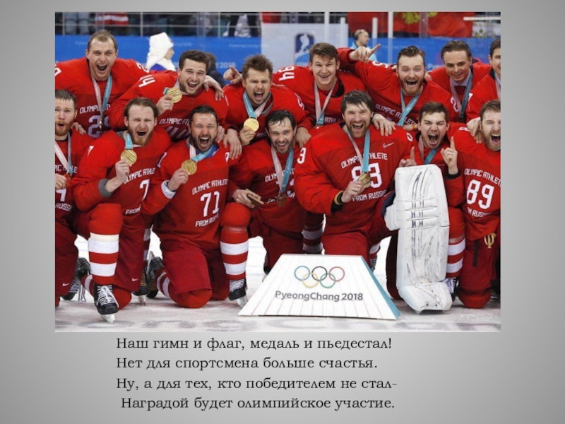 Слайд 33Наш гимн и флаг, медаль и пьедестал!