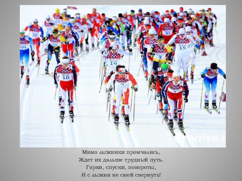 Слайд 15Лыжные гонки – гонки на лыжах на определенную дистанцию по специально