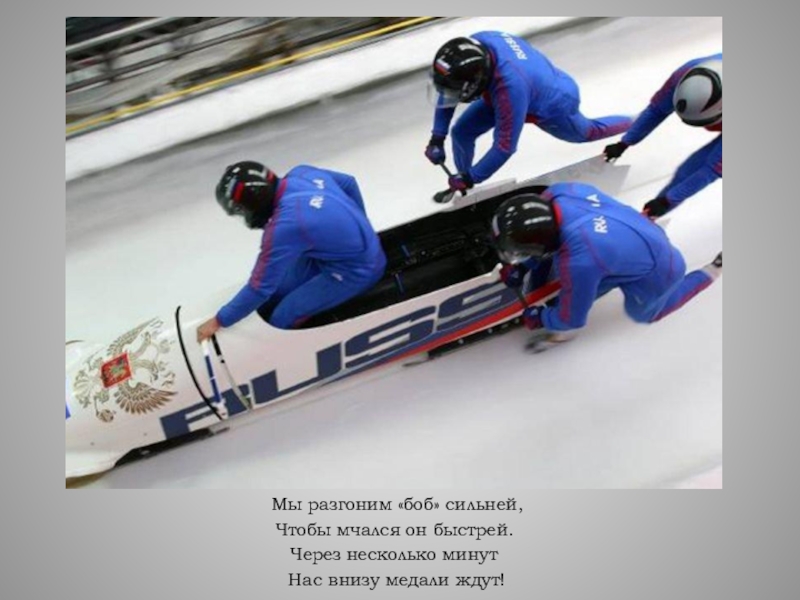 Слайд 5Бобслей – скоростной спуск по специальной ледовой трассе в виде желоба