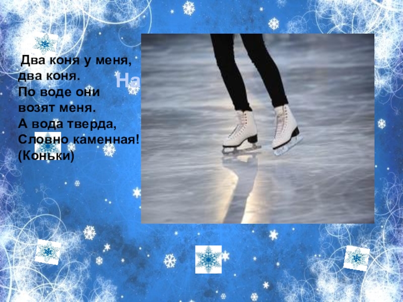 Название списка Два коня у меня, два коня. По воде они возят меня. А вода тверда, Словно