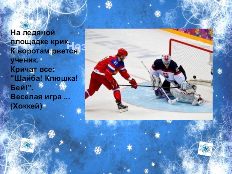Название спискаНа ледяной площадке крик, К воротам рвется ученик. Кричат все: