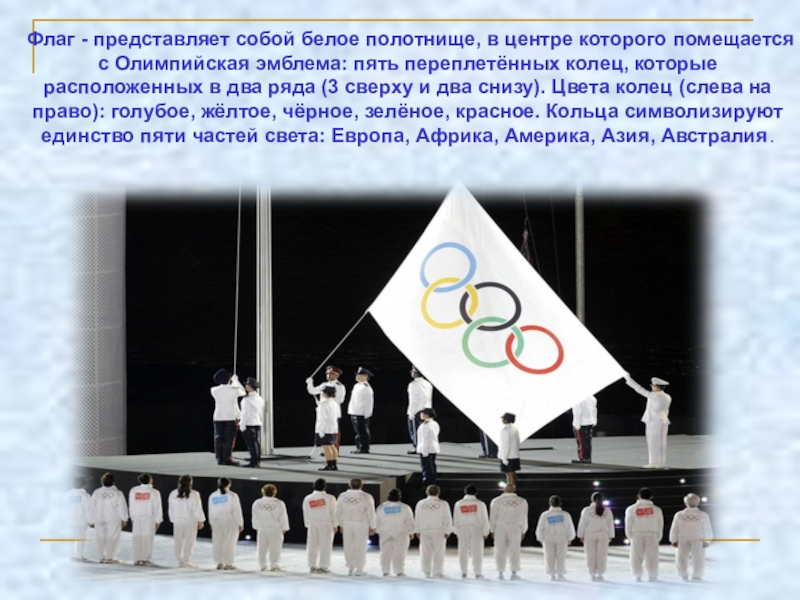 Слайд 12Флаг - представляет собой белое полотнище, в центре которого помещается c Олимпийская