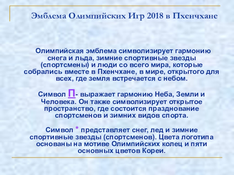 Слайд 10Эмблема Олимпийских Игр 2018 в Пхенчхане