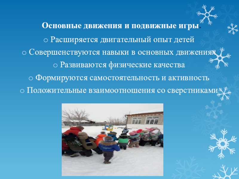 Слайд 14Основные движения и подвижные игры.