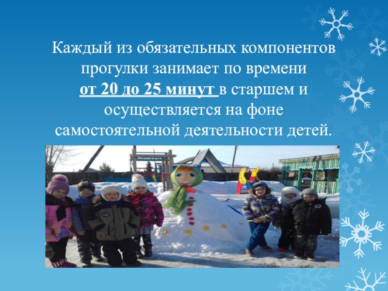 Слайд 9Каждый из обязательных компонентов прогулки занимает по времени
