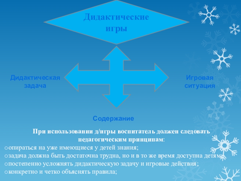 При использовании д/игры воспитатель должен следовать педагогическим принципам: