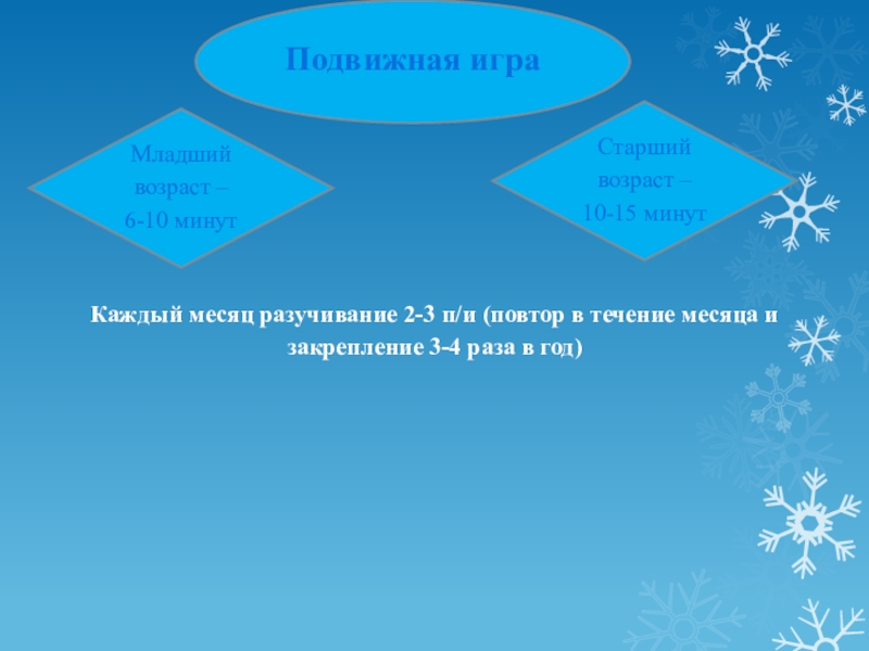 Каждый месяц разучивание 2-3 п/и (повтор в течение месяца и закрепление