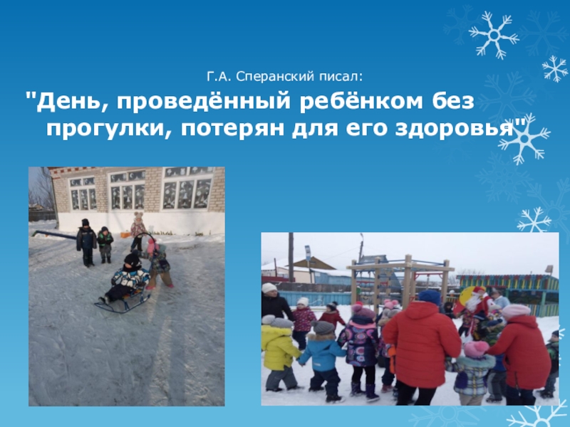 "День, проведённый ребёнком без прогулки, потерян для его здоровья"