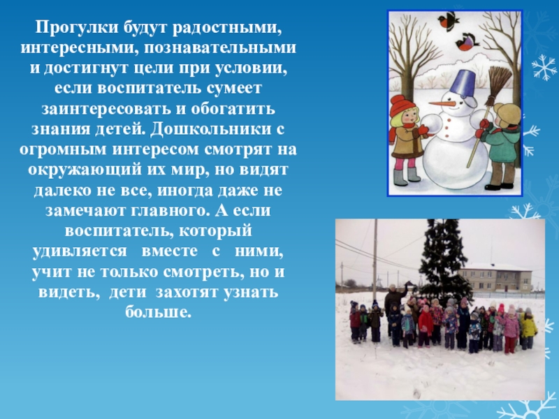 Слайд 26Прогулки будут радостными, интересными, познавательными и достигнут цели при условии, если