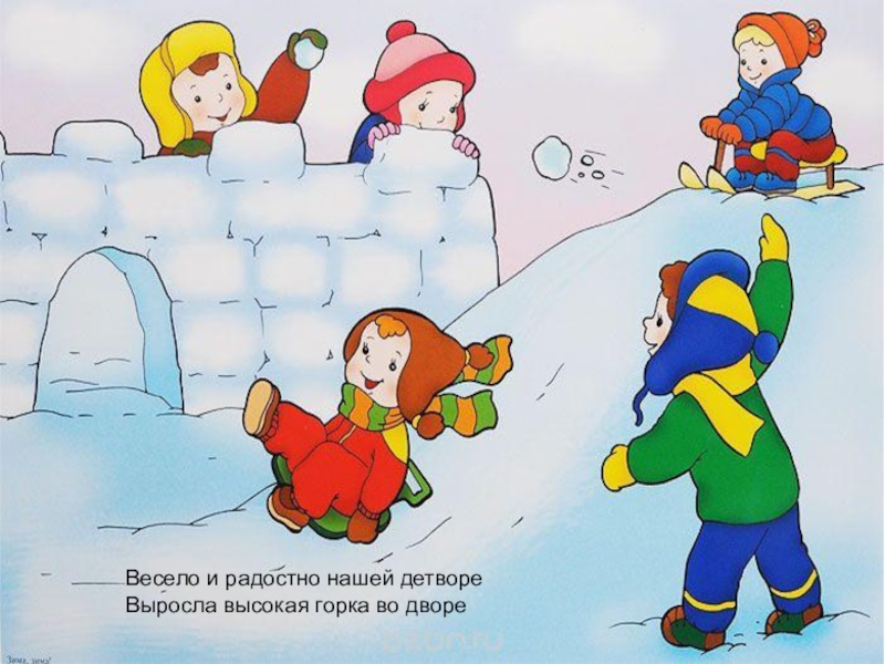 Весело и радостно нашей детвореВыросла высокая горка во дворе