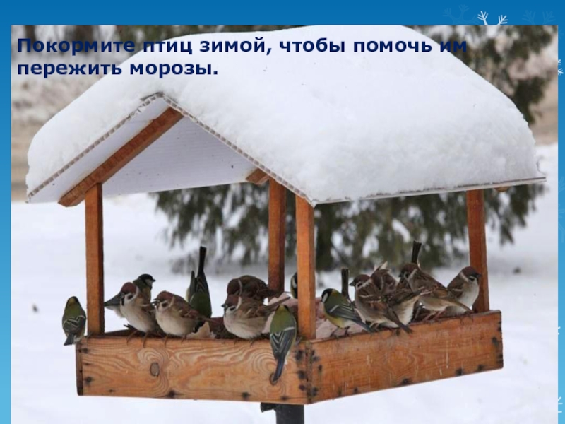 Слайд 12Покормите птиц зимой, чтобы помочь им пережить морозы.