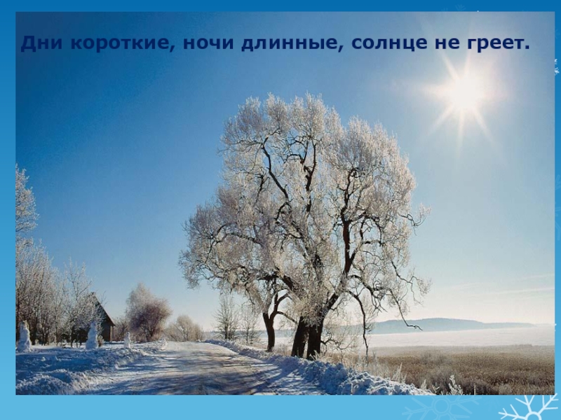 Слайд 3Дни короткие, ночи длинные, солнце не греет.
