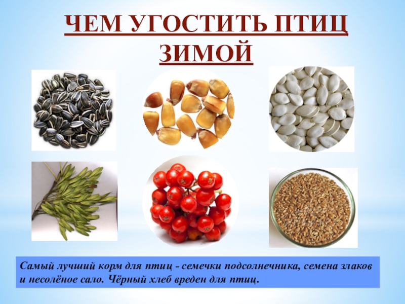 ЧЕМ УГОСТИТЬ ПТИЦ ЗИМОЙСамый лучший корм для птиц - семечки подсолнечника, семена злаков и несолёное сало. Чёрный