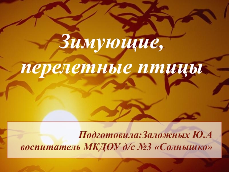 Зимующие, перелетные птицыПодготовила:Заложных Ю.Авоспитатель МКДОУ д/с №3 «Солнышко»