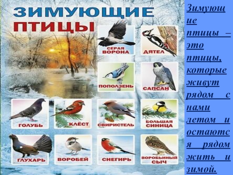 Слайд 9Зимующие птицы – это птицы, которые живут рядом с нами летом
