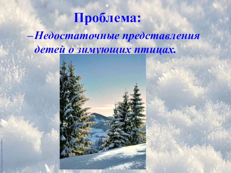 Наша задача - познакомить детей с птицами, зимующими в нашей местности, с их видами и особенностями; научить заботиться о птицах, помогать им в холодное зимнее время.