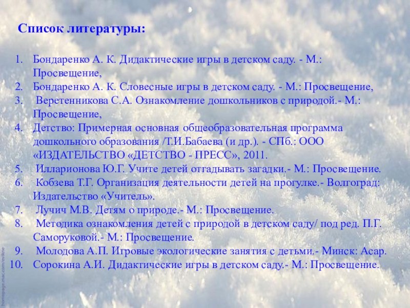 Веретенникова С.А. Ознакомление дошкольников с природой.- М.: Просвещение,