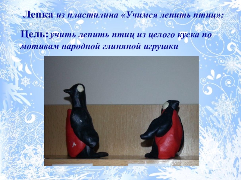 Слайд 25Лепка из пластилина «Учимся лепить птиц»: