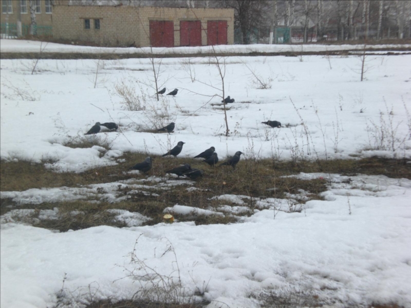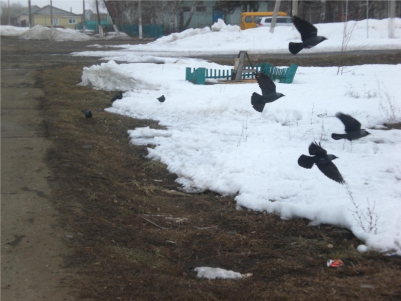 живут, ночуют и кормятся во дворах. В дневное время прилетают в село сороки, вороны. Из леса перебираются для отыскивания еды снегири и свиристели