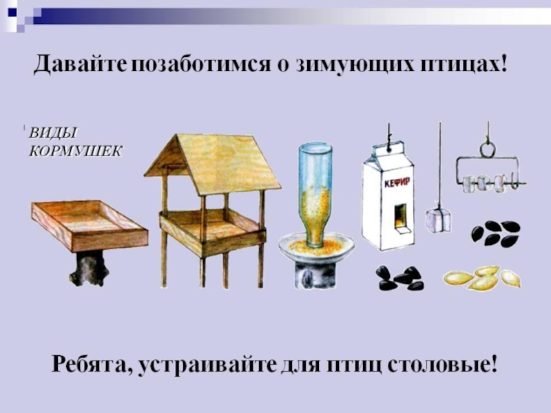 изучить материал об этих птицах; - наблюдать за поведением птиц, за повадками; - изготовить кормушки и подкармливать птиц; - научиться любить птиц и любоваться птицами; - привлечь ребят своего класса и нашей улицы к сохранению птиц, внимательному и доброму отношению к окружающей нас природе