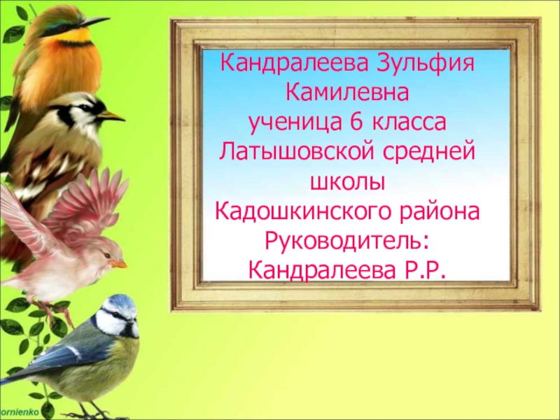 Слайд 1Кандралеева Зульфия Камилевна ученица 6 класса Латышовской средней школы Кадошкинского района Руководитель: Кандралеева Р.Р.