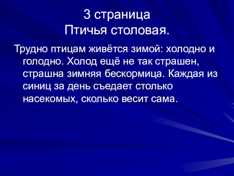 3 страница Птичья столовая.Трудно птицам живётся зимой: холодно и голодно. Холод ещё не так страшен, страшна зимняя