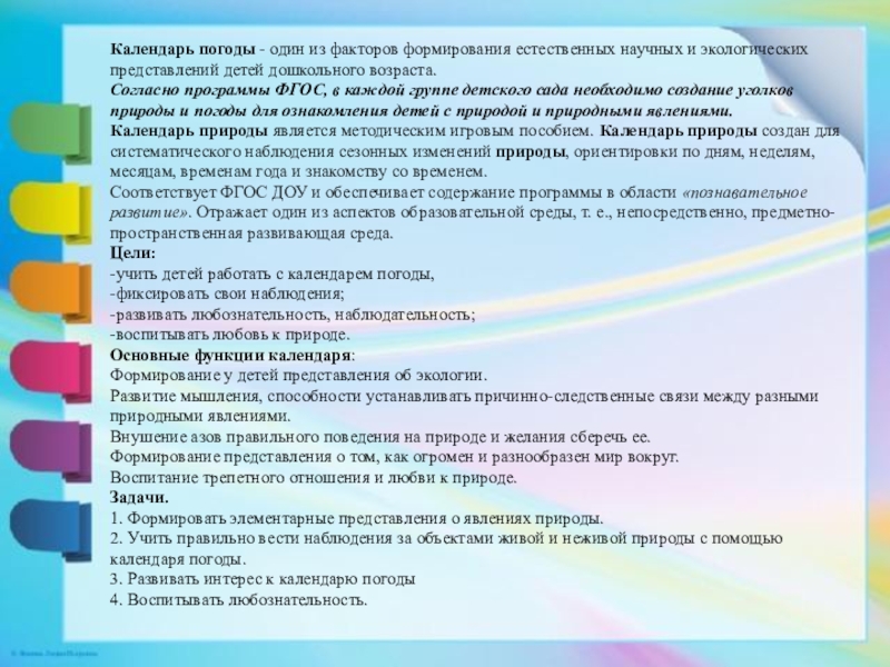 Наблюдения проводятся ежедневно, за три месяца или в конце сезона создается итоговая сводка: