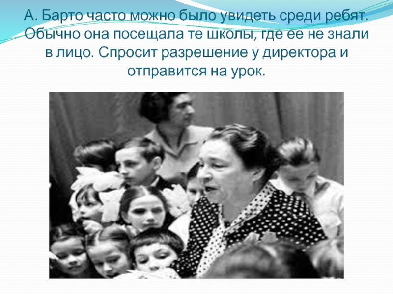 Слайд 6А. Барто часто можно было увидеть среди ребят. Обычно она посещала