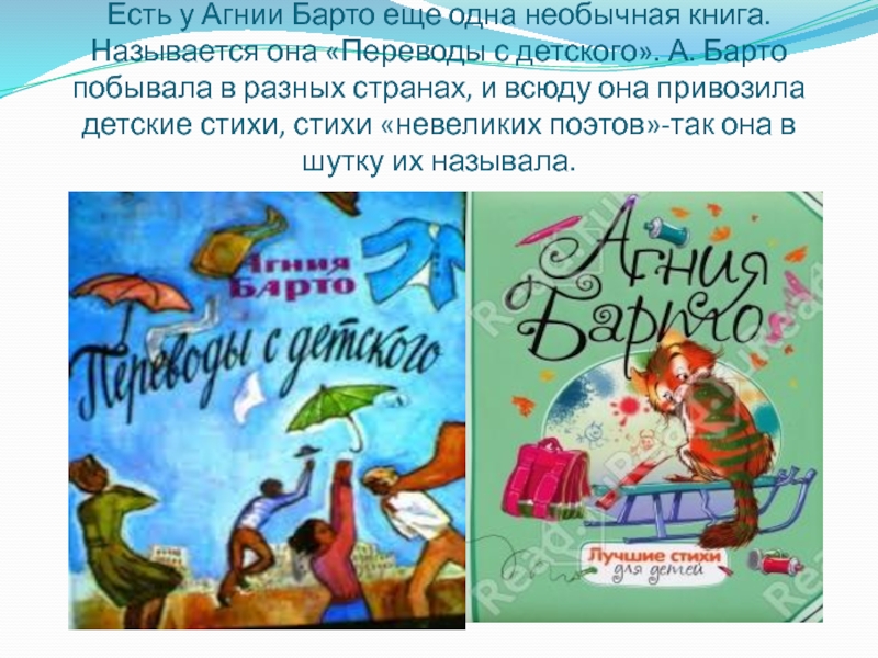 Слайд 12Есть у Агнии Барто еще одна необычная книга. Называется она «Переводы