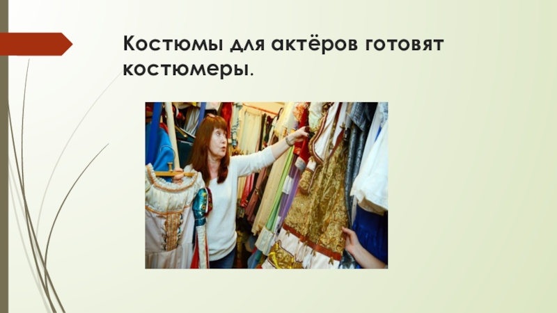 Слайд 6Костюмы для актёров готовят костюмеры.