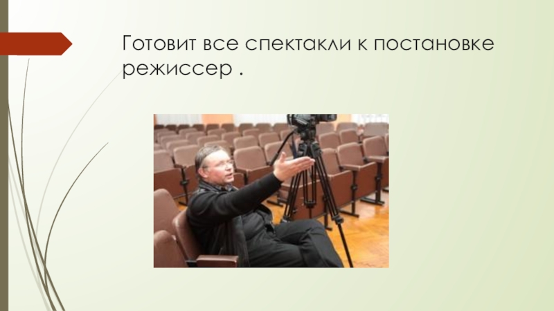 Слайд 4Готовит все спектакли к постановке режиссер .